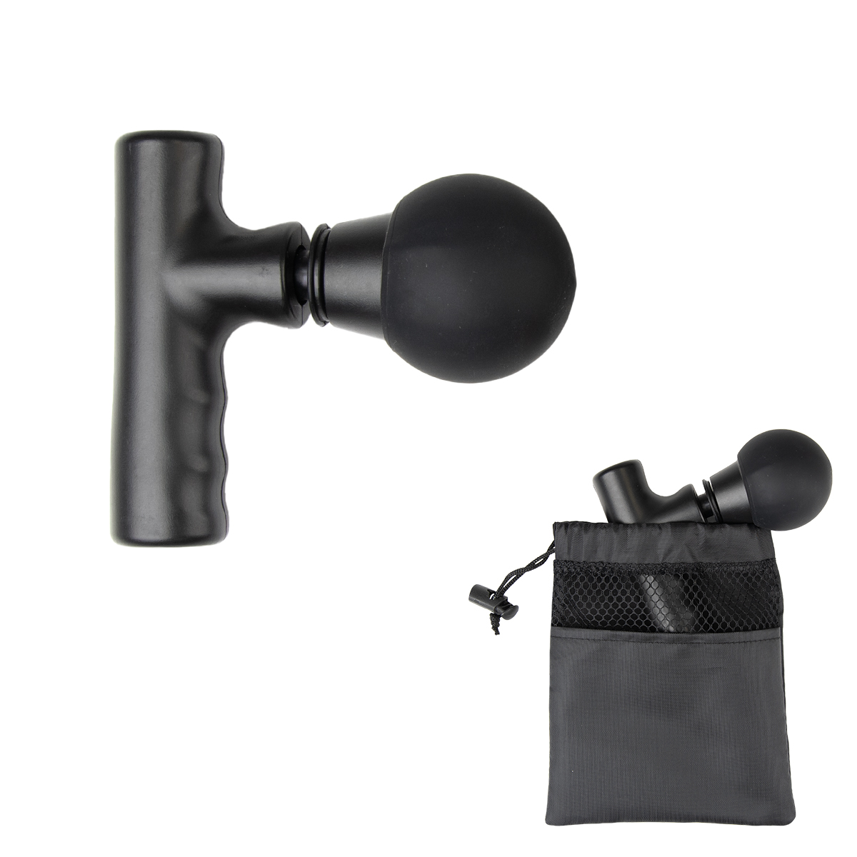 One Setting | Press On/Off | Includes rPET Pouch | Mesh In Pouch Is Made From Post Consumer Recycled Materials | Recycled Polyester (rPET) is Obtained By Melting Down Existing Plastic Bottles And Other Material Sources To Create New Polyester Fiber | Massage Gun, Drawstring, Cord Fastner are not rPET | Features A Type-C Input (Cord Included) | 800 mAh Lithium Ion Grade A Battery