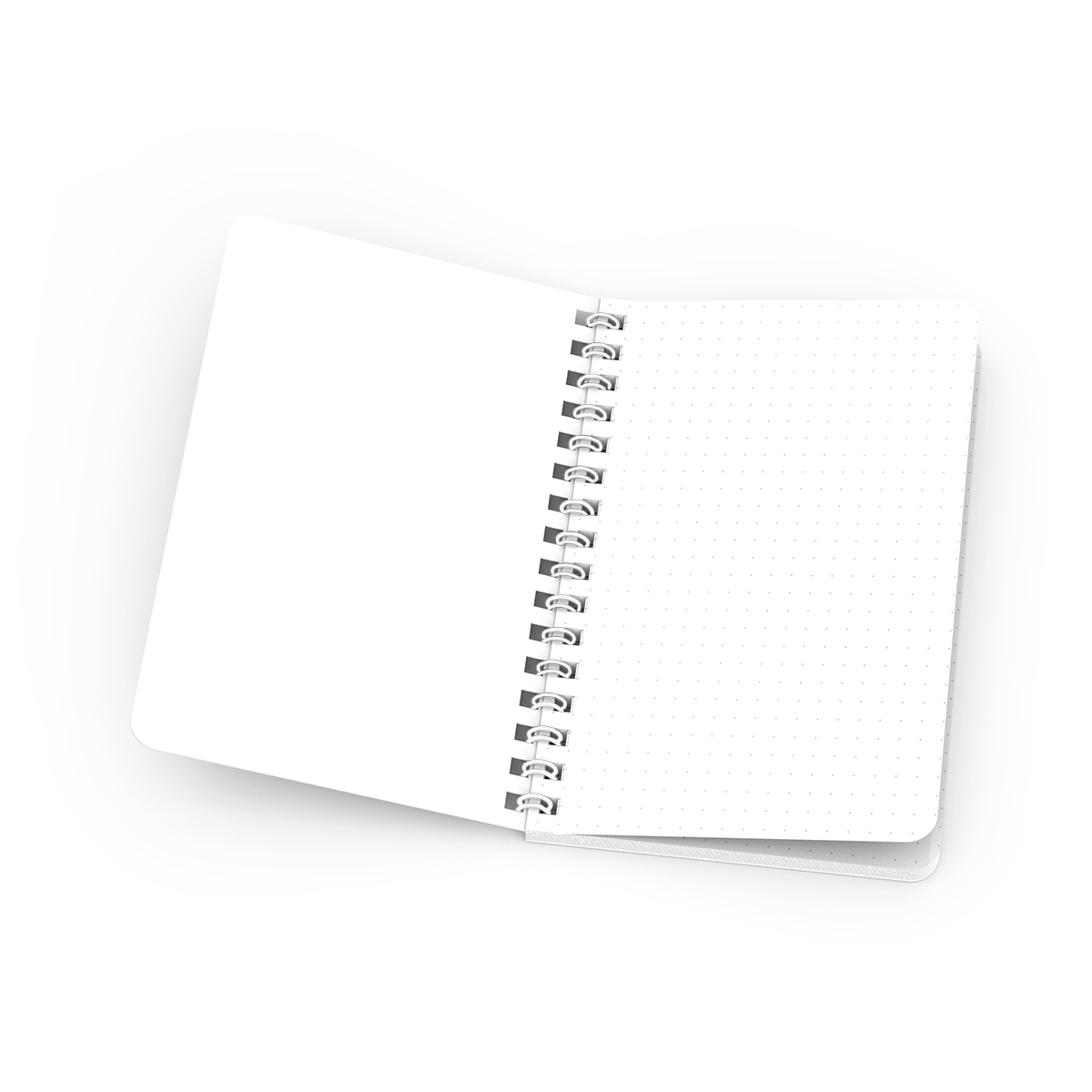 50 Page Notebook With Side Spiral | Choose Blank, Dotted Or Lined Paper | White Or Black Metal Coil Binding | Interior: 120 GSM Ultra Smooth & Brilliantly White | Cover: 260 GSM With Velvet-Like Soft Touch Lamination