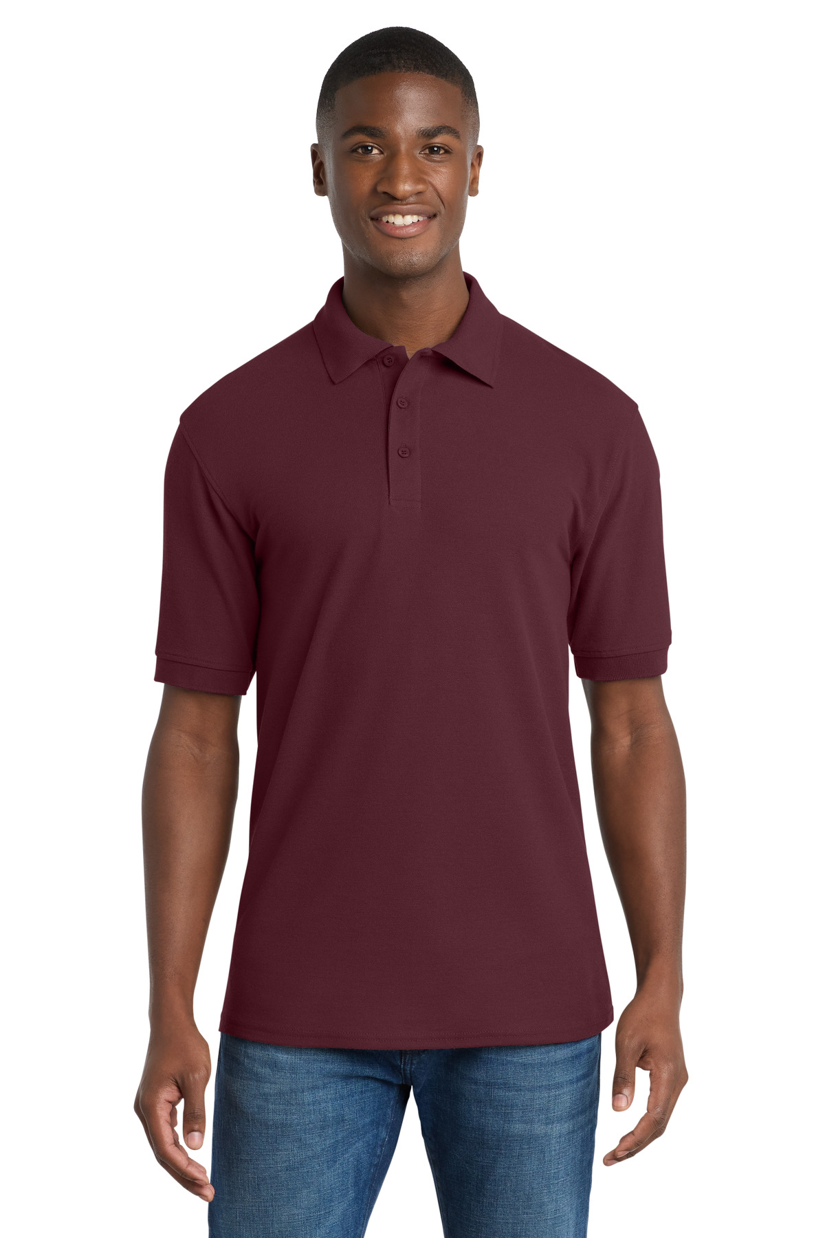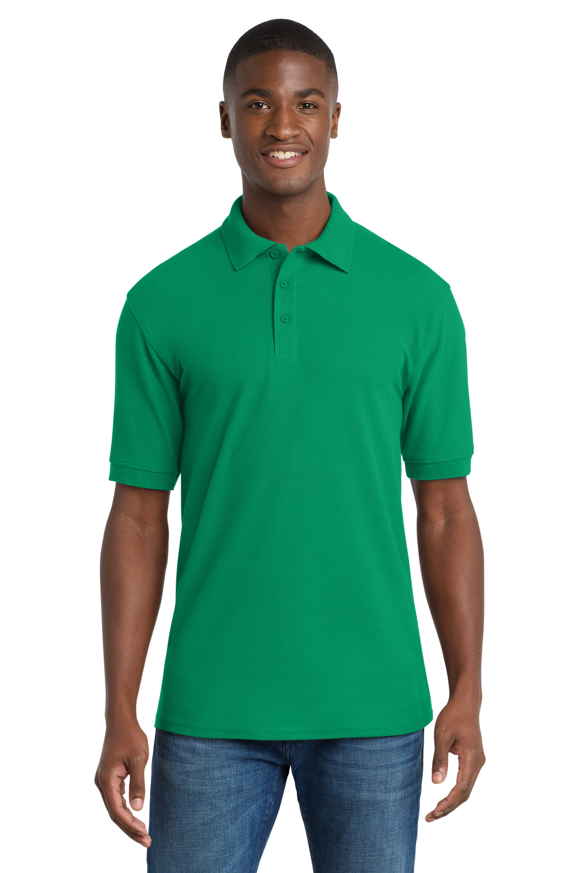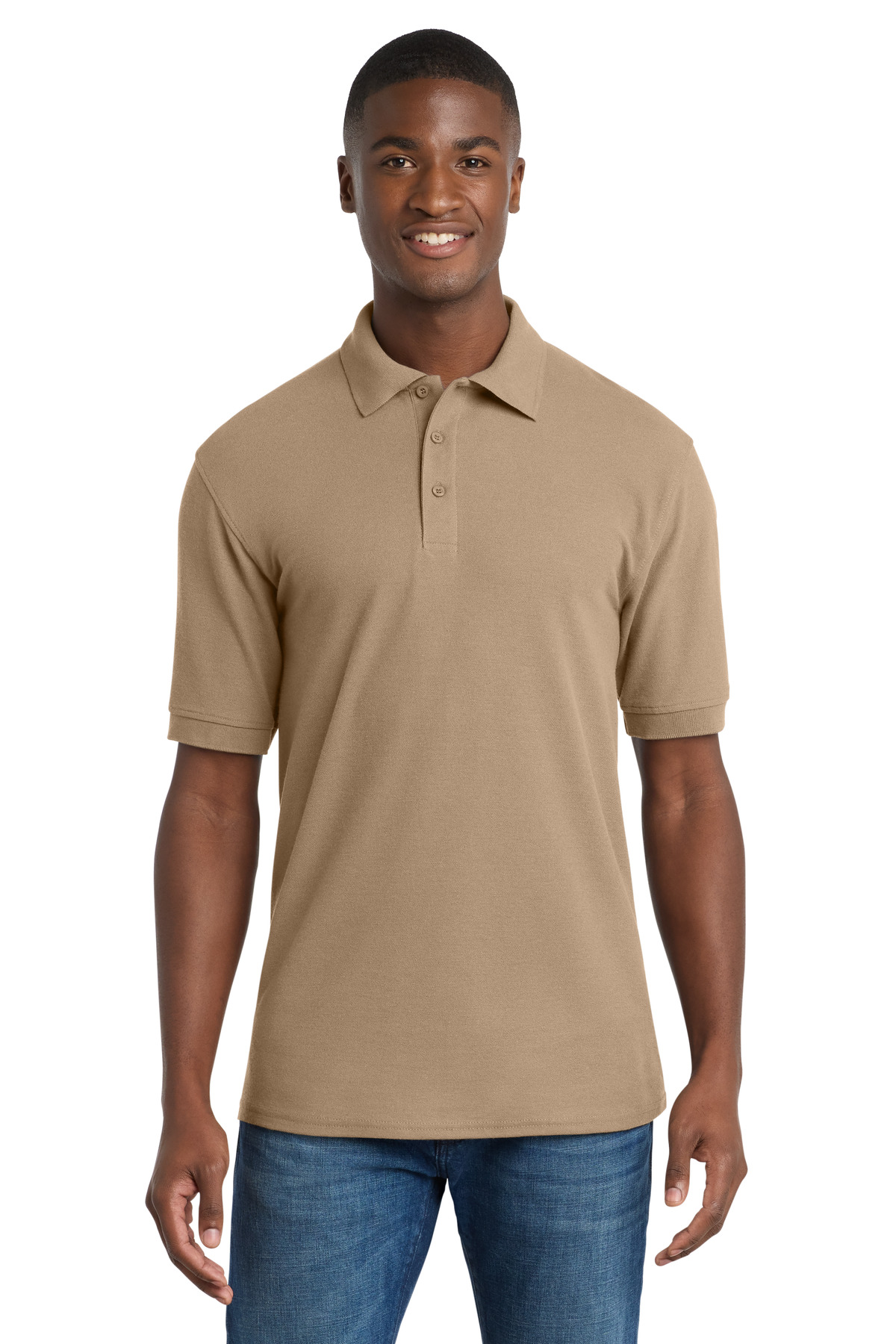 With a stain-release finish this budget-minded polo is exceptionally durable.6.5-ounce 50/50 double pique knit cotton/poly Stain-release finish 1x1 rib knit collar and cuffs Coverstitched shoulders armholes and cuffs 3-button placket with dyed-to-match buttons Double-needle hem