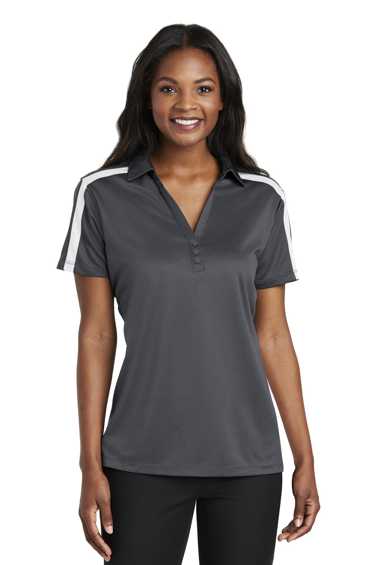 A stripe on the front back shoulders and sleeves adds bold contrast to our high-performance polo that wicks moisture and resists snags. PosiCharge technology delivers exceptional colorfastness and optimal printability.4-ounce 100% polyester double knit with PosiCharge technology; White is 4.3-ounce for increased coverage Self-fabric collar Tag-free label 3-button Y-neck placket with dyed-to-match buttons Open hem sleevesIf applying sublimation special care must be taken throughout the process. Contact your decorator for more details.