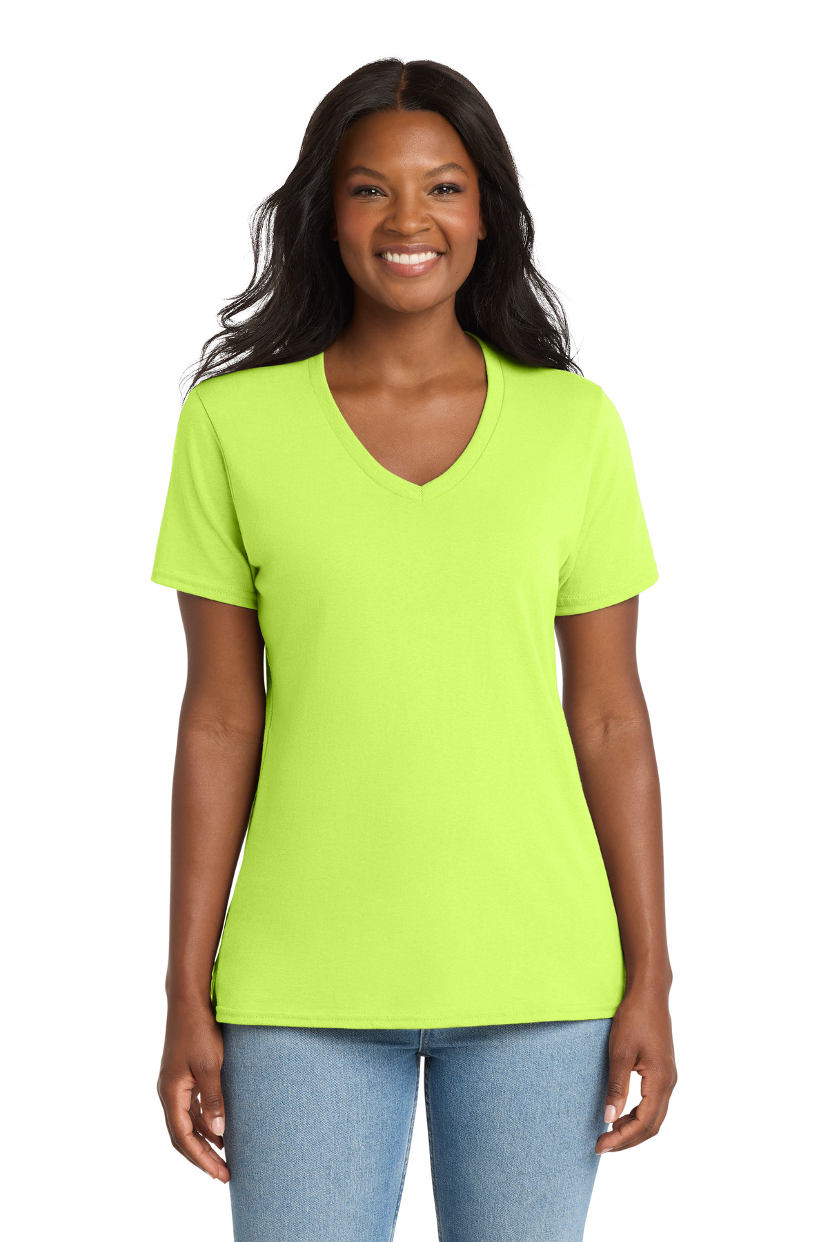 A v-neck gives our budget-friendly tee an up-to-date style.5.4-ounce 100% cotton50/50 cotton/poly (Neons Dark Heather Grey)90/10 cotton/poly (Athletic Heather)98/2 cotton/poly (Ash) Side seamed with a contoured body for a feminine fitRemovable tag for comfort and relabeling