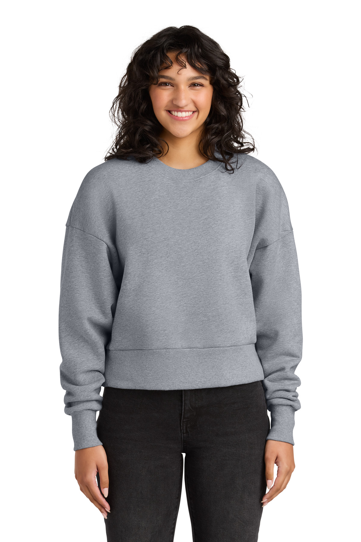 10-ounce 80/20 combed ring spun cotton/recycled polyester fleece 75/25 cotton/polyester (Heather Gray) 100% cotton face Shoulder to shoulder binding Tear-away label Halfmoon at back neck 1x1 rib knit collar Dropped shoulders Side seamed 2x2 rib knit cuffs and hem Oversized fit