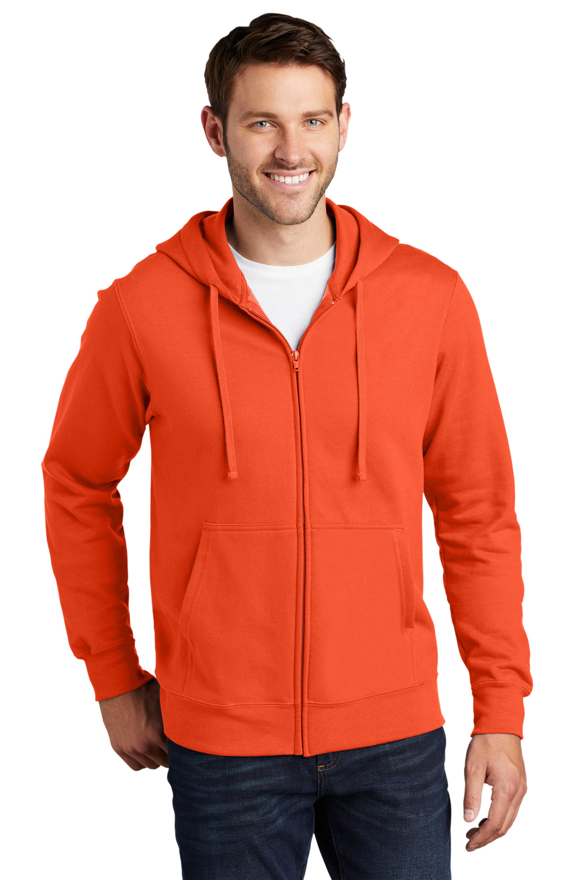 Youll be the biggest fan of this smooth-faced fleece. 8.5-ounce 80/20 ring spun cotton/poly 75/25 ring spun cotton/poly (Athletic Heather) 50/50 ring spun cotton/poly (Dark Heather Grey) 100% ring spun cotton face (except Athletic Heather and Dark Heather Grey) Removable tag for comfort and relabeling Locker patch Twill-taped neck Dyed-to-match YKK zipperIdeal for direct to garment (DTG) printing