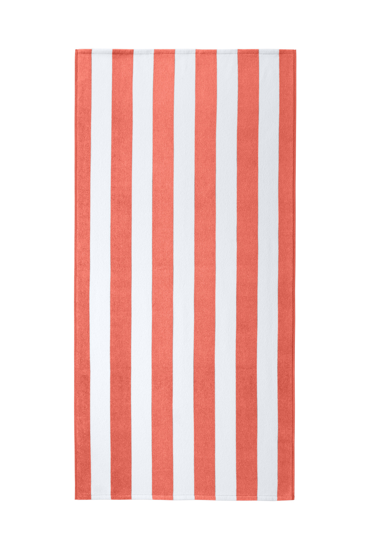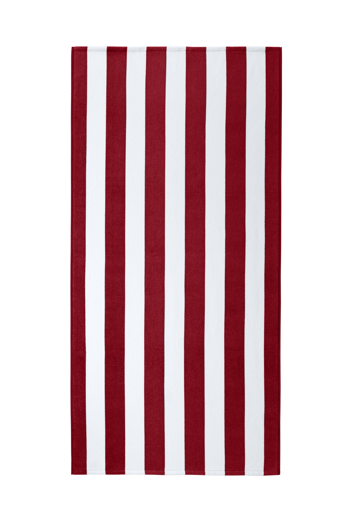 The bright stripes and great value make this extra soft absorbent towel the right choice for any beach or water adventure. 100% cotton terry velour Printed fade-resistant stripes Fully hemmed Dimensions: 30 w x 60 l; 11lbs./doz.