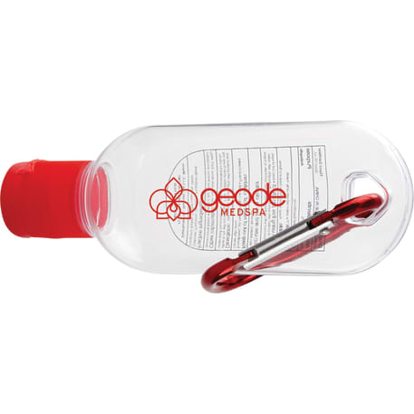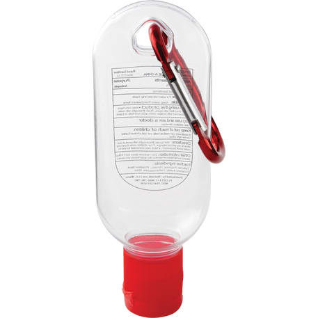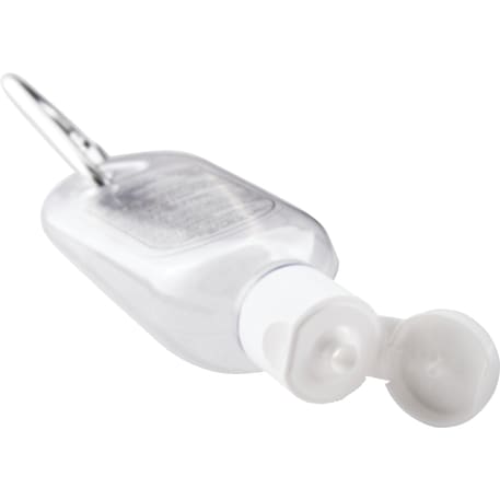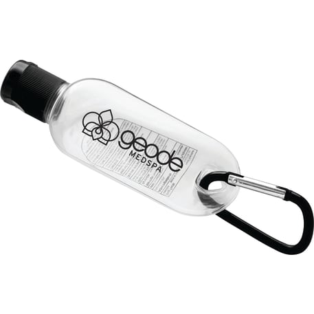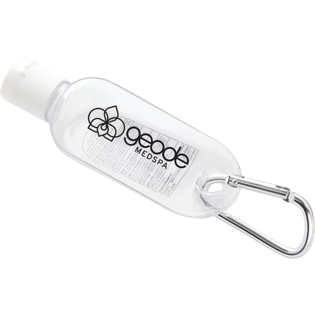 The 1oz Clip-N-Go Hand Sanitizer is an alcohol-based, 1 ounce (30ml) hand sanitizer in a tottle bottle with a flip-top lid and a 62% alcohol content. It includes a metal mini-carabiner that matches the lid color. Meets FDA requirements and is available for shipment in contiguous US only (shipping to Alaska, Hawaii & Puerto Rico NOT available). See General Information page for additional air shipment charges. Multi-color decoration available.