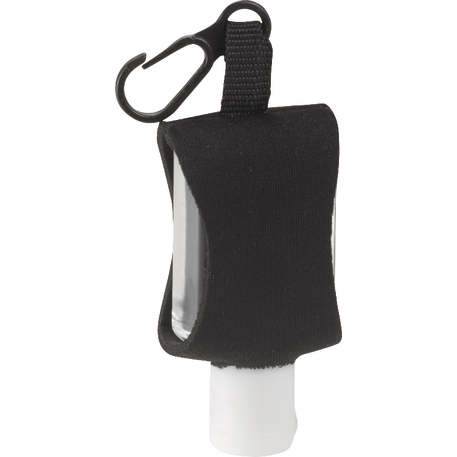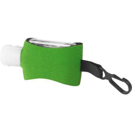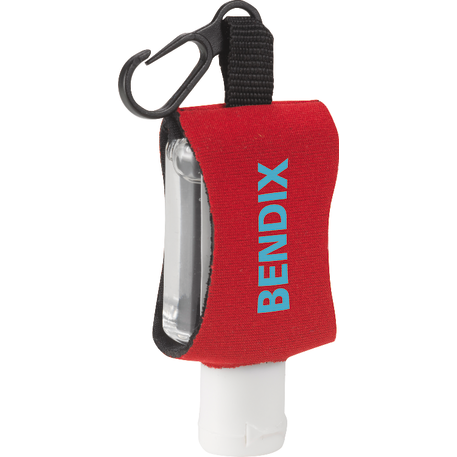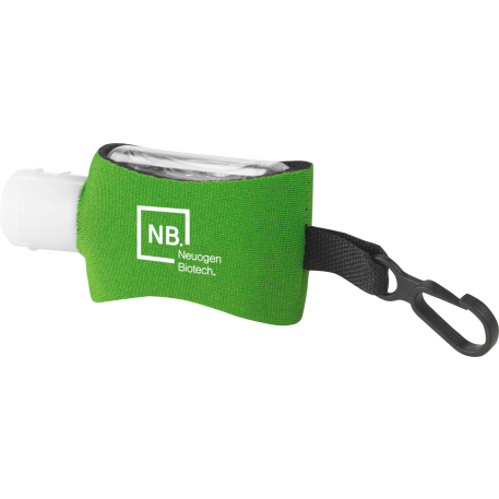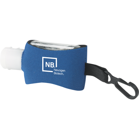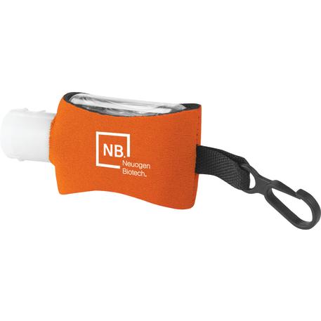 The 0.5oz Li'l Cleaner Hand Sanitizer is an alcohol-based, 0.5-oz (15ml) hand sanitizer in squeeze bottle with flip-top lid and a 62% alcohol content. Includes neoprene sleeve with plastic clip. Imprint available on neoprene only. Meets FDA requirements and is available for shipment within the United States (including Alaska, Hawaii & Puerto Rico). Not available for export. See General Information page for additional air shipment charges. Due to the materials used for manufacturing neoprene sleeve, the imprint may appear distressed. Single color decoration only.
