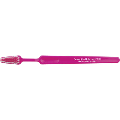 The Signature Soft Toothbrush is a high-quality, adult-sized toothbrush with soft bristles, plus matching inner bristles and body colors. It's also made in the USA. Optional matching toothbrush travel caps available at $0.20(G) each and are packed separately. This product meets FDA requirements and is only available for shipment within the United States (including Alaska, Hawaii & Puerto Rico). Less than minimum orders are not available. FOB ZIP: WI, 54703.