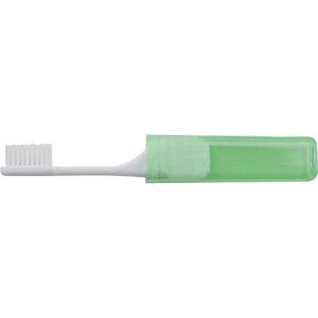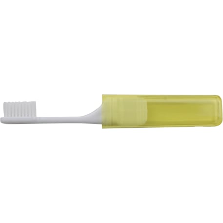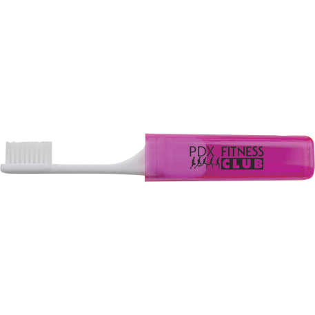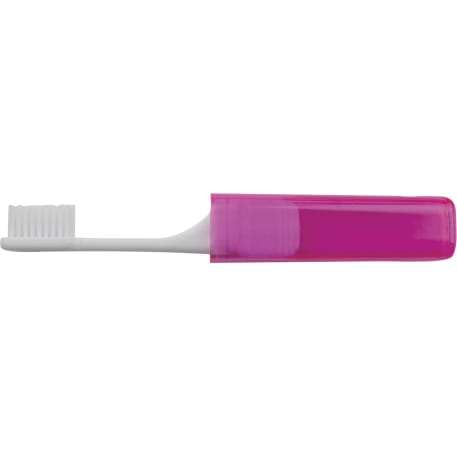 The Travel Toothbrush has a bristle head that stores inside the handle, making it perfect for travel. This white toothbrush comes in an assortment of different colored handles and is only available for shipment within United States (including Alaska, Hawaii & Puerto Rico). Less than minimum are orders not available. FOB ZIP: WI, 54703.