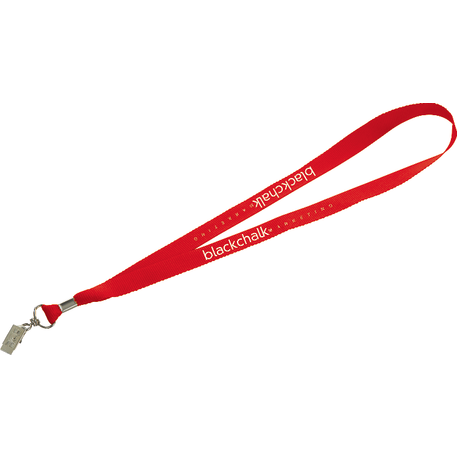 The Lanyard with Bulldog Clip is a 3/4-inch wide lanyard with a swivel bulldog clip. Second location setup & run charge waived if both sides decorated with same artwork.