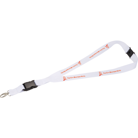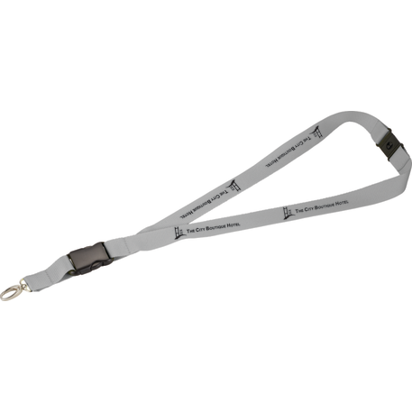 The Hang In There Lanyard Plus is a 1-inch wide and 22-inch long lanyard that includes breakaway neck clip and a detachable plastic clip with wide metal swivel hook.