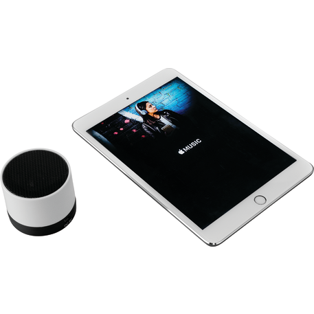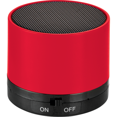 The Cylinder Bluetooth® Speaker is a lightweight speaker with an internal rechargeable battery that provides up to 1.5 hours of nonstop music. 3 Watt Speaker Output. Built in Microphone for conference calls. Includes Micro USB Charging Cable. The Bluetooth working range is 10 meters (33 feet). Charge time: one hour.