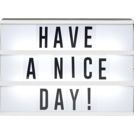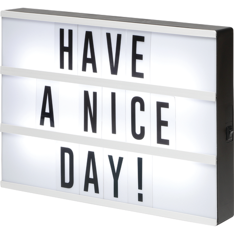 The Cinema Light Box lets you create your own message with this decorative light box. It includes 85 letters and symbols and an On/off switch located on the side of light box. Includes 3x AA batteries and a white gift box.