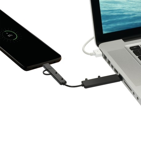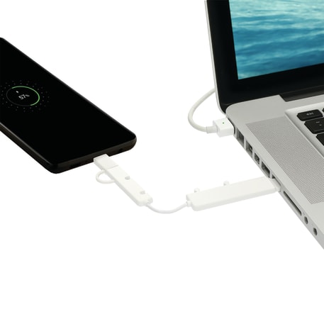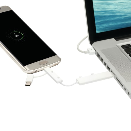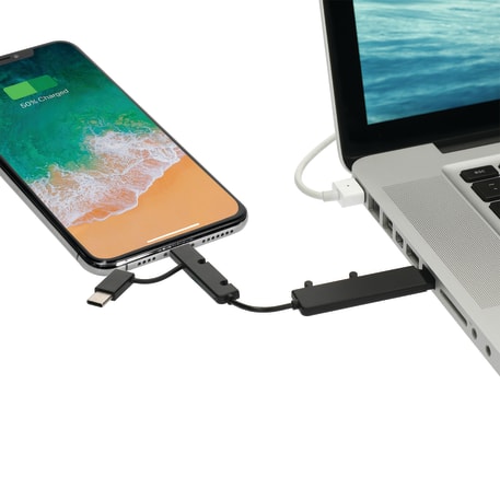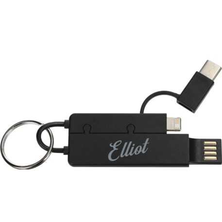 Puzzle Piece 3-in-1 Charging Cable features a 2-in-1 dual compatible tip for both Apple® iOS and Android devices, and a USB Type C adapter with a 1.3A current. Not compatible with iPad Pro.