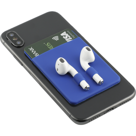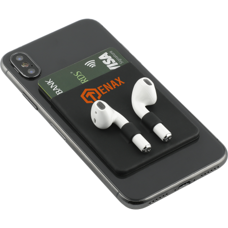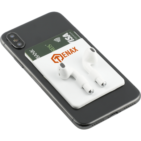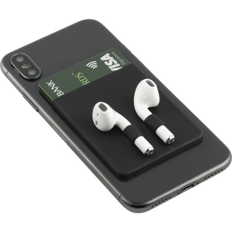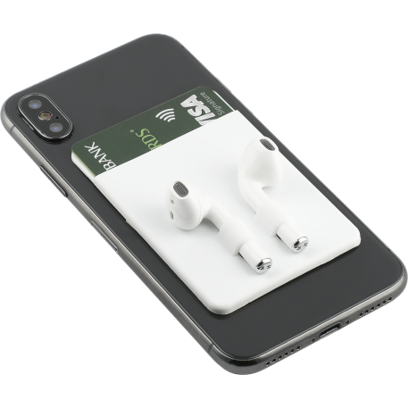 The silicone True Wireless Earbud Phone Wallet can carry one card and pair a true wireless earbuds. The earbud holder will keep your Airpods, Airpods Pro, or another unbranded True Wireless Earbuds secure. The phone wallet includes an adhesive that keeps the phone wallet secure to your mobile device.