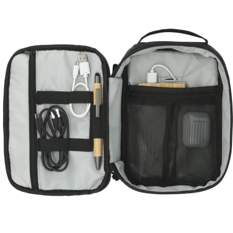 The RPET Tech Organizer is perfect for organizing and transporting power banks, earbuds and any other electronic accessories. The case includes five elastic loops for storing charging cables and styluses, plus two zippered pockets. It also features a large zippered pocket and a half mesh pocket that’s perfect for earbuds. The slip pocket and cord passthrough let you store a power bank inside the case while your device is charging. Through a partnership with 1% For The Planet one percent of sales of all EcoSmart® products are donated to environmental nonprofits.