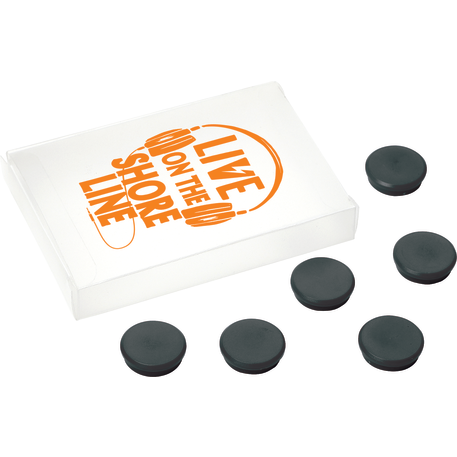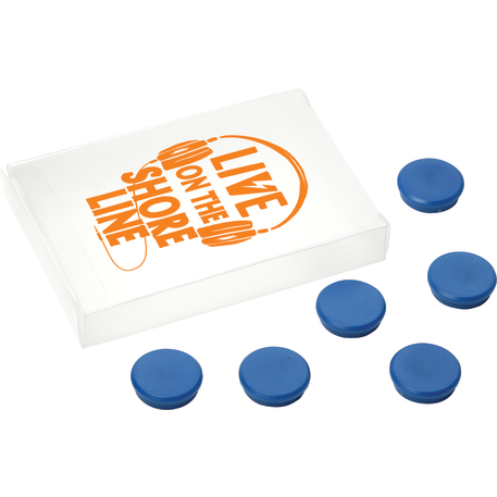 Magnet set includes 6 magnets packed in a drawer with a sliding PVC tray.