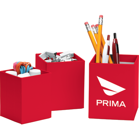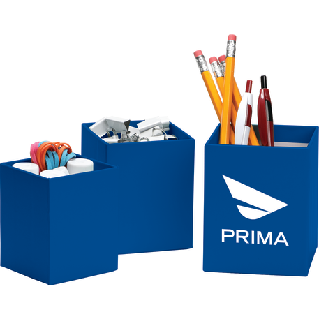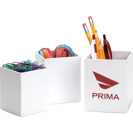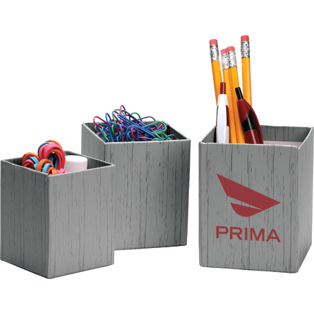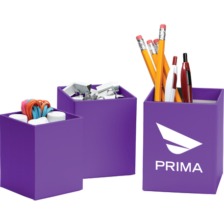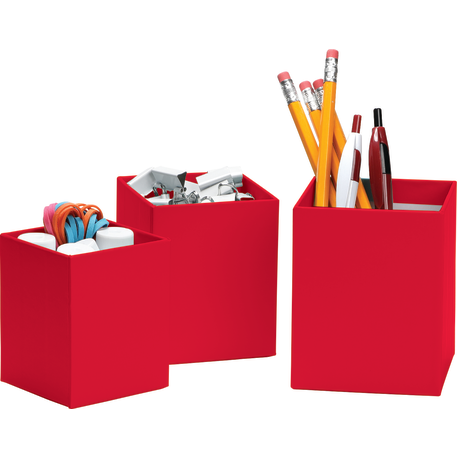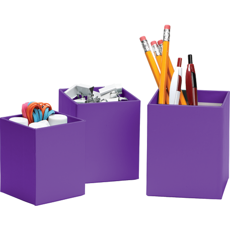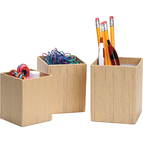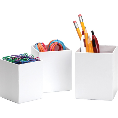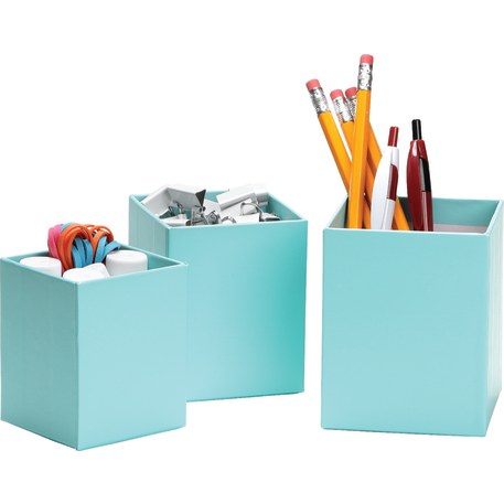 The 3-piece smart box is crafted with cardboard and covered with colored paper. Three sizes offer simple organization for pens and other small desk accessories.