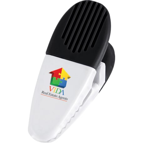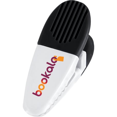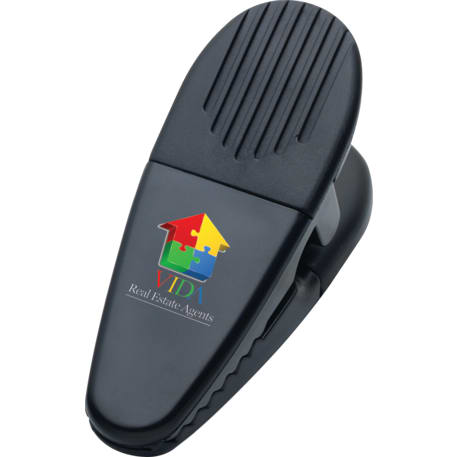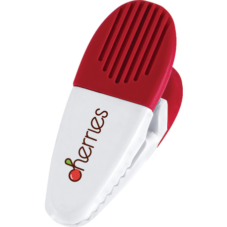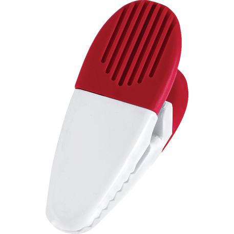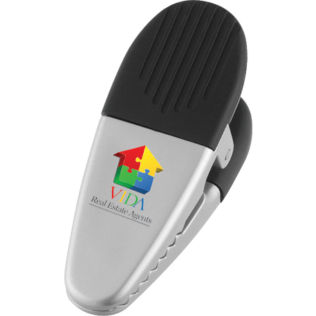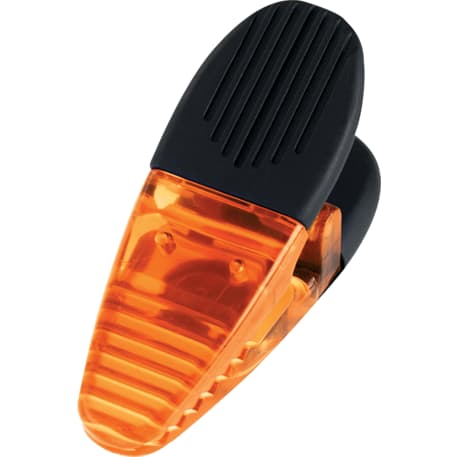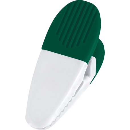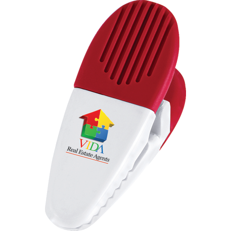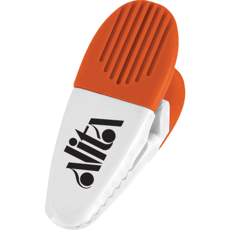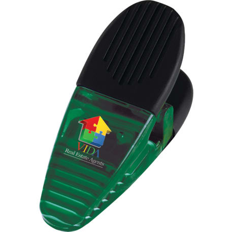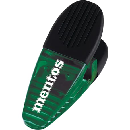 The Magnetic Memo Clip features a heavy-duty spring-loaded hinge with a magnet on the back and a rubberized grip.