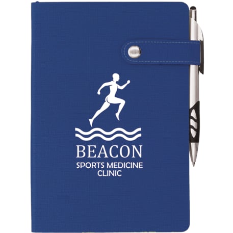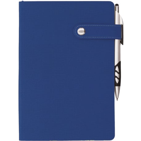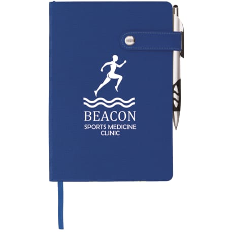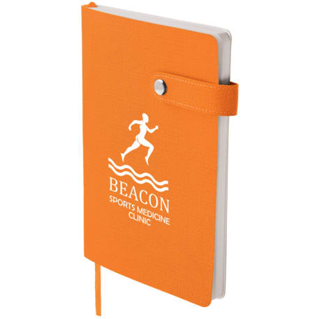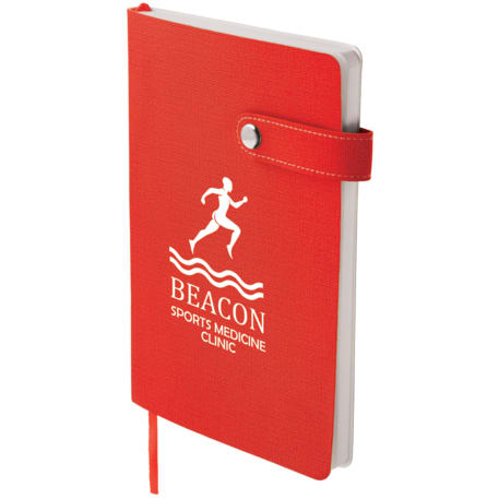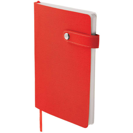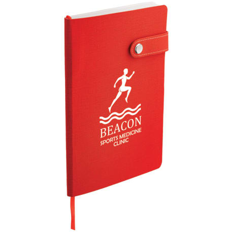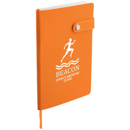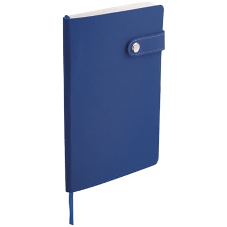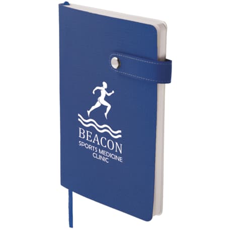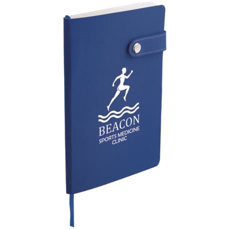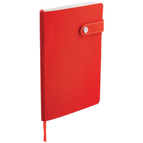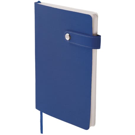 The 5.5" x 8" Paige Snap Closure Notebook is a smooth, PU cover bound notebook with 80 sheets of cream lined paper. Snap button closure. Color matching ribbon page marker.