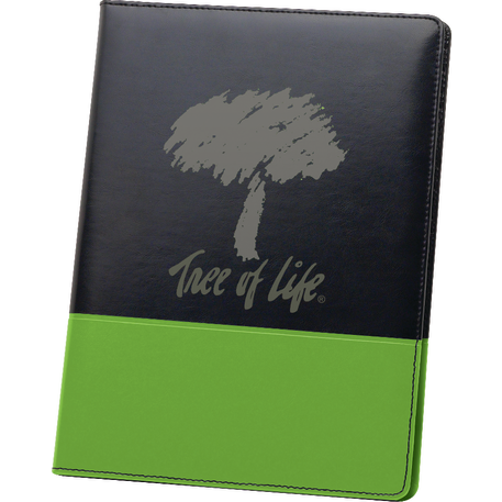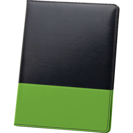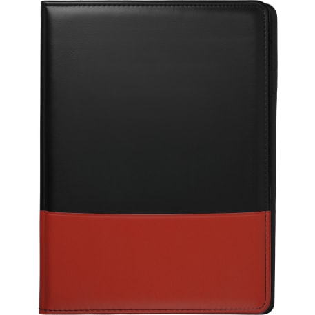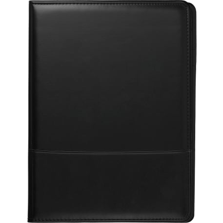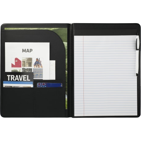 The Associate Padfolio includes a refillable, 30 ruled page 8.5” x 11.5” notepad with an inside front panel that contains a flap pocket with 3 horizontal pockets. A pen is not included.