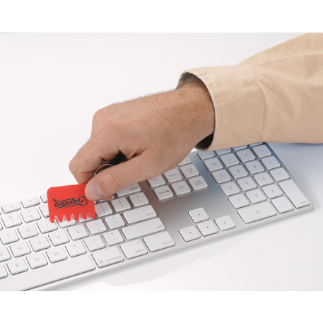 The Silicone Keyboard Brush Key Ring is great for dust cleaning of keyboards, mobile devices or glasses. It also includes an attached key ring for keys.