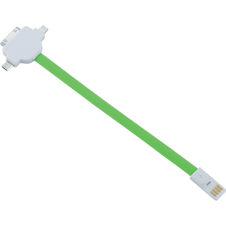 The Neo 3-in-1 Charging Cable is a flexible neon cord with built-in connectors to charge and transfer data. It includes a 30-pin and 8-pin lightning connectors for Apple® products, as well as a micro USB connector for use with all other devices.