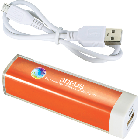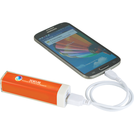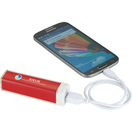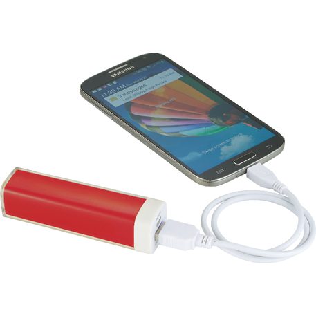 The Flash 2,200 mAh Power Bank has a rechargeable lithium ion Grade A battery (8.14Wh) with enough power to charge smartphones, MP3 players and more. The reusable power bank charges via USB cable (included) which can recharge the battery backup or other devices with a micro-USB input like Android smartphones from Samsung®, Motorola®, HTC®, Nokia® and others. Red LED light indicates while charging. Input: 5V/800mA. Output: 5V/1000mA. Power banks are permitted in carry-on luggage only, and at the discretion of TSA agents. Please charge power bank before initial use.