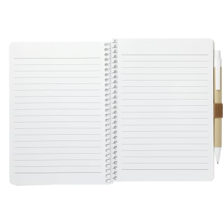 The 5” x 7” FSC® Mix Spiral Notebook with Pen features a FSC-certified craft paper soft cover with 70 sheets of white FSC-certified, soy-based ink lined paper. Includes pen loop and pen with black ink. Through a partnership with 1% For The Planet, one percent of sales of all EcoSmart® products are donated to environmental nonprofits. Due to the nature of the material, there may be color variances.