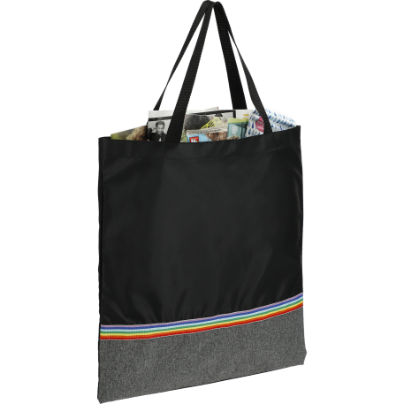 The Rainbow RPET Convention Tote is bound to make a statement at your next event. This bag is manufactured from 100% recycled 210d polyester, made from water bottles. Through a partnership with 1% For The Planet one percent of sales of this and all EcoSmart products will be donated to nonprofits dedicated to protecting the planet.