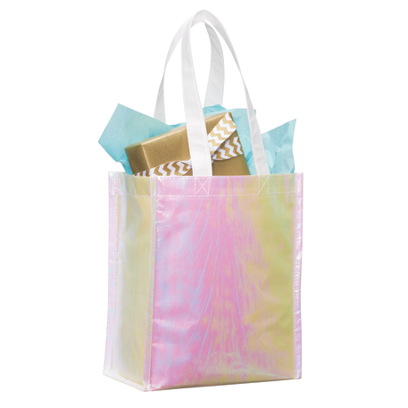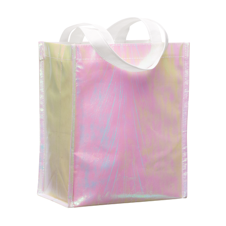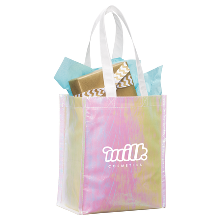 The Iridescent Non-Woven Gift Tote is a trendy way to give a gift. This tote features an open main compartment. Polypropylene is recyclable with #5 plastics please check with your local municipalities for specific rules and regulations.