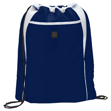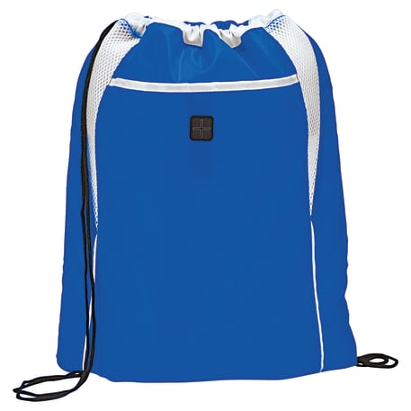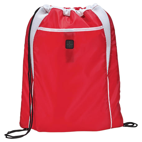The Dart Drawstring Bag is kid-friendly and has a large open main compartment with a cinch closure. This bag has added features like a front pocket with hook and loop closure, an ear bud port for easy access and mesh detailing.