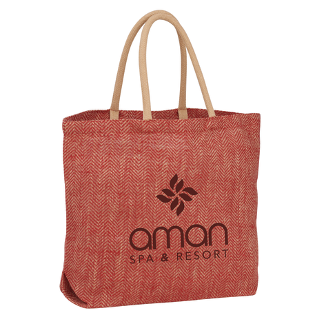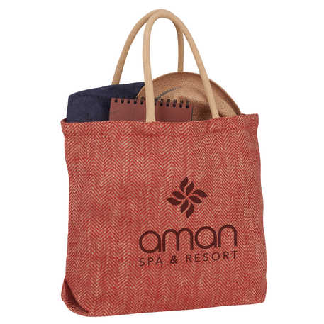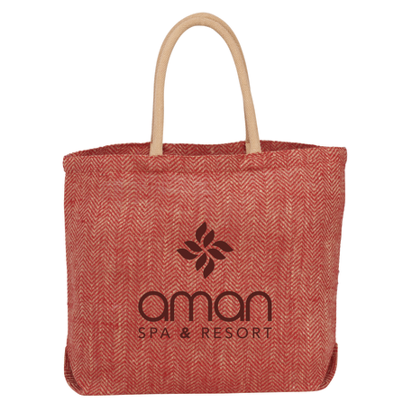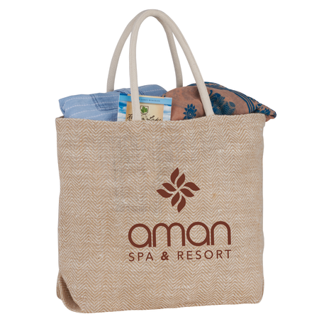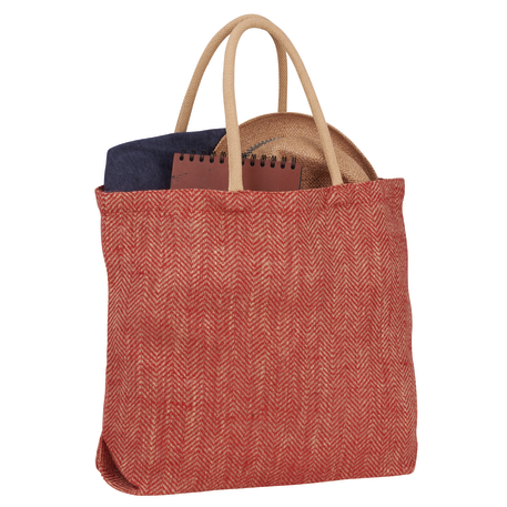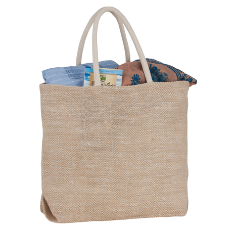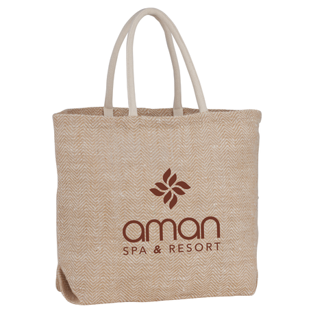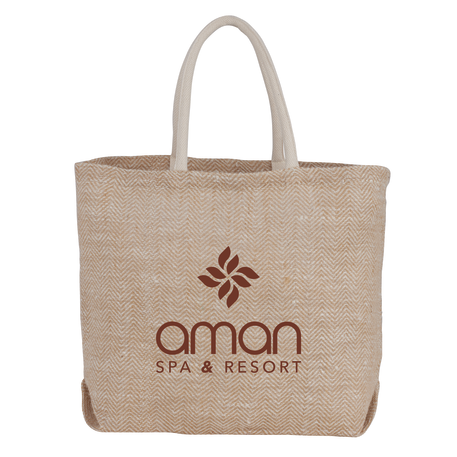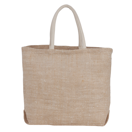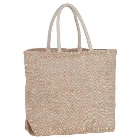 The Herringbone Jute Tote features an large open main compartment and is the perfect tote for the beach or the market. Due to the texture of the natural jute material, this item will shed slightly over time.