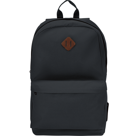 The Stratta 15” Computer Backpack has a pocket for everything. The large zippered main compartment contains a 15 inch laptop sleeve,front zippered gusseted pocket to ensure you have a place for everything. The front features a lash tab accent for your carabiner and a top carry handle for easy grab and go.