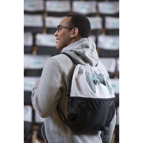 The Deluxe Non-Woven Drawstring Bag features an open main compartment with cinch closure. This bag can also be used as a chair cover.