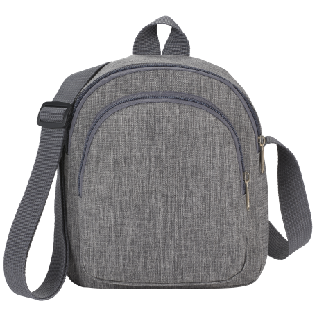 The Cross Body Backpack features a trendy, small silhouette, an adjustable shoulder strap and two zippered compartments.