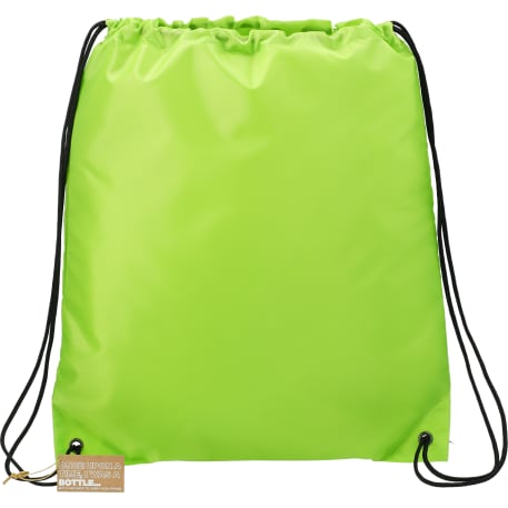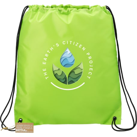 The Oriole RPET Drawstring Bag includes an open main compartment with a cinching rope closure and reinforced bottom corner tabs. This bag is manufactured from 100% recycled 210d polyester, made from water bottles. Through a partnership with 1% For The Planet one percent of sales of this and all EcoSmart products will be donated to nonprofits dedicated to protecting the planet.