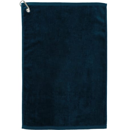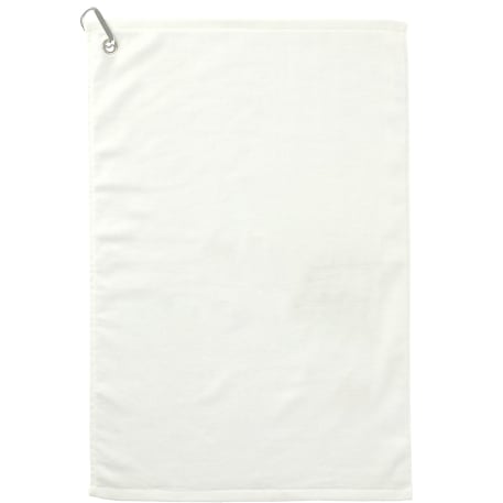 This heavyweight 3.5lb/dozen golf towel is 100% cotton and comes with a grommet and aluminum carabiner clip for attaching to your golf bag. Free embroidery run charges on up to 10,000 stitches.