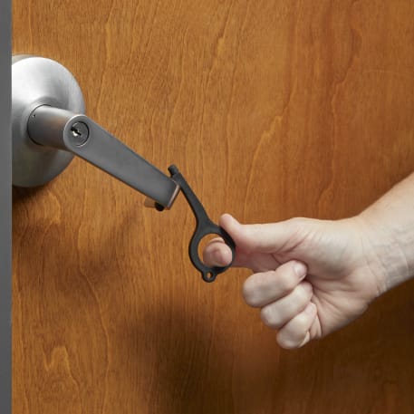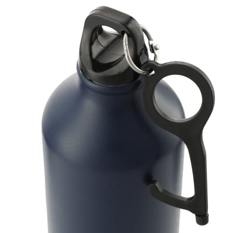 The Pacific 26oz Aluminum Sports Bottle features single-wall construction, a twist-on lid and includes a no contact tool attached to the lid. This keychain tool helps to avoid contact with dirty contaminated surfaces. This multi-purpose tool can be used when opening doors pressing buttons using the ATM and carrying shopping bags. Made from reinforced nylon. Hook shape designed to grab a handle and open doors. Rubber stylus can be used on signature pads ATMs and cellphones or tablets. This tool can be easily taken off for easy usage.