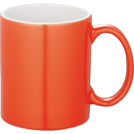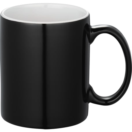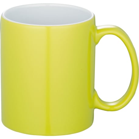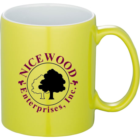 The Bounty Spirit 11oz Ceramic Mug features a C-handle classic design with white interior accent. See General Information page for special ceramic item handling charge. Hand wash only and follow any included care guidelines.