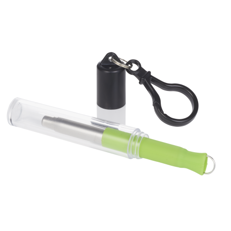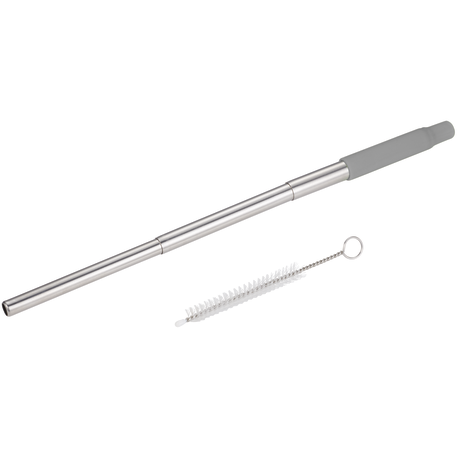 The Reusable, collapsible straw is made of a food-grade stainless steel material with a silicone tip for safety. Stainless straw longest length is 8.62 inches including silicone tip. Brush length: 3.5 inches. This Eco-friendly straw is durable and easy to clean, and its use reduces plastic waste. Through a partnership with 1% For The Planet, one percent of sales of this and all EcoSmart products will be donated to nonprofits dedicated to protecting the planet.