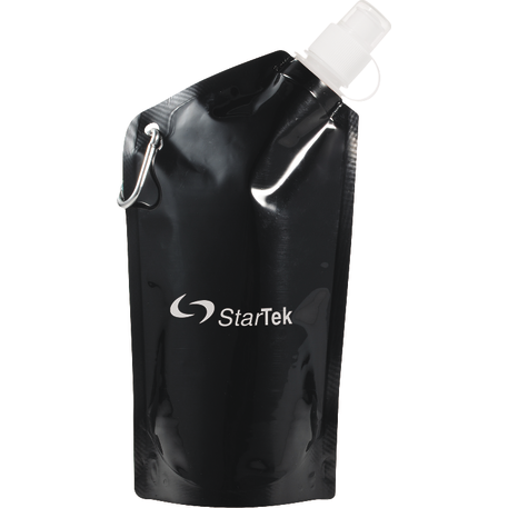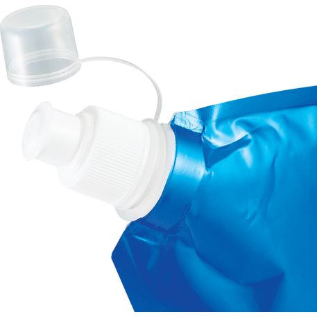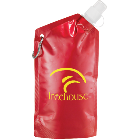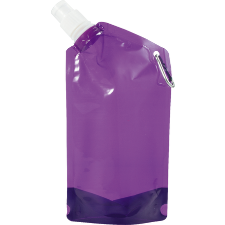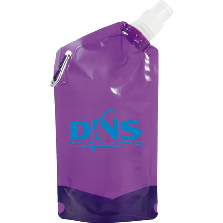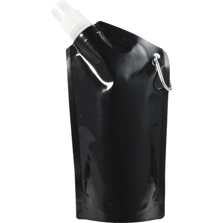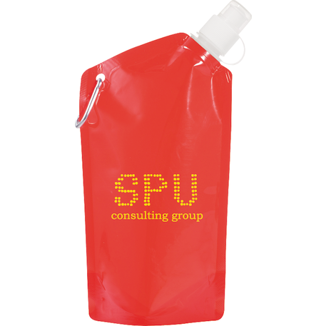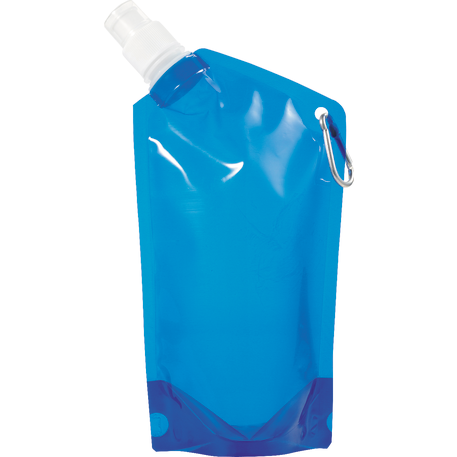 The Cabo 20oz Water Bag with Carabiner is a laminated drink bag with 5mm aluminum carabiner. It includes a twist-on, push/pull drink spout with a removable cap. A mini-carabiner is included, but not attached. US Patent #D639,185. Hand wash only and follow any included care guidelines.