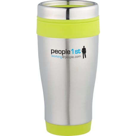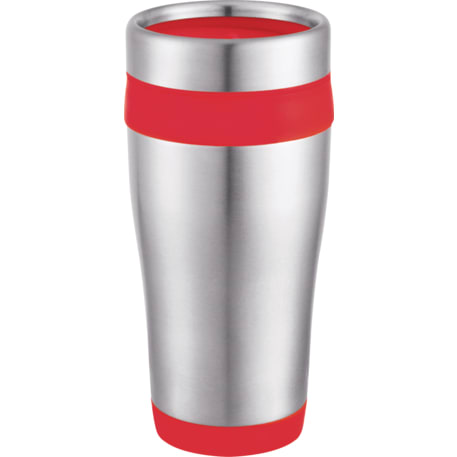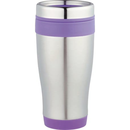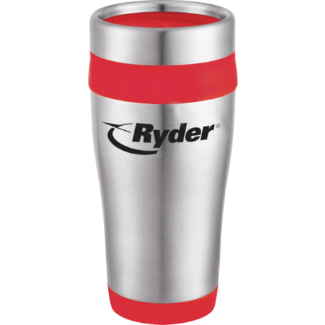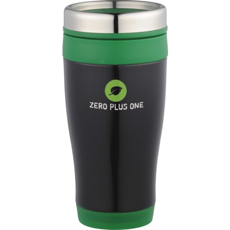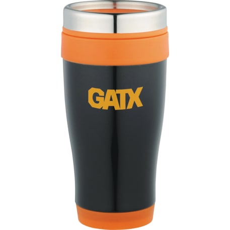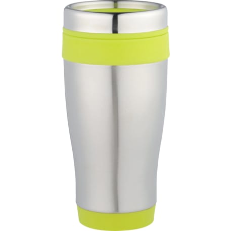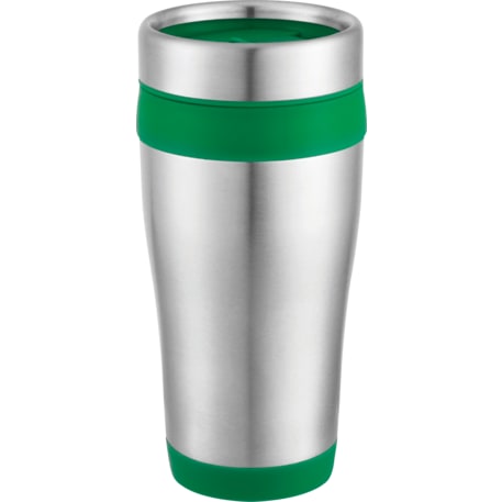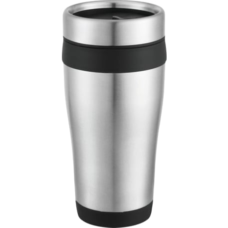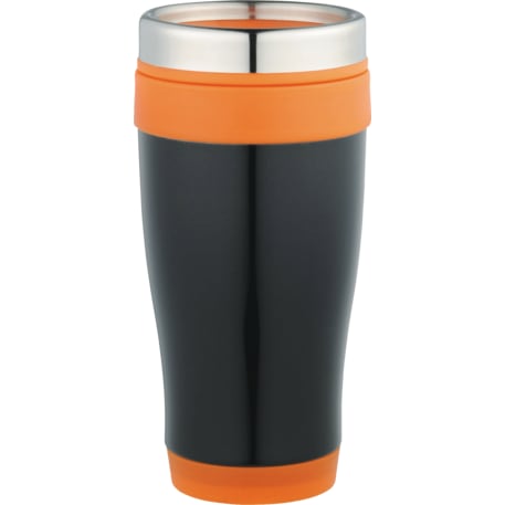 The Carmel 16oz Travel Tumbler features double-wall construction and stainless steel twist-on lid with a slide-lock drink opening. Hand wash only and follow any included care guidelines.