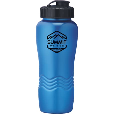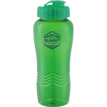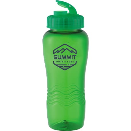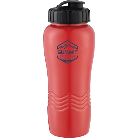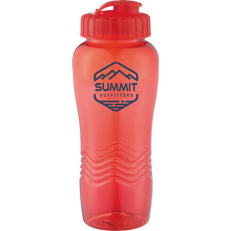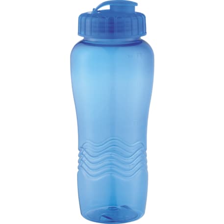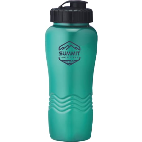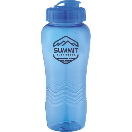 The Surfside 26-ounce Sports Bottle is a USA-made, BPA-free sports bottle with a twist-on lid with a flip-top drink opening. It's phthalate-free, non-toxic, lead-free and meets FDA Requirements. oz. measurement markings are conveniently located right on the bottle. The bottles and lids shipped separately (lids not attached). Hand wash only and follow any included care guidelines.