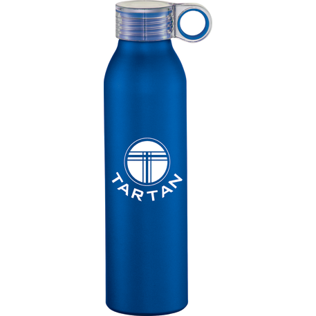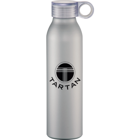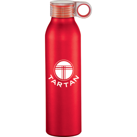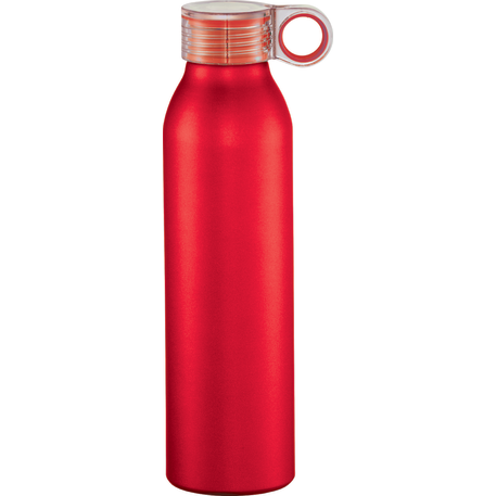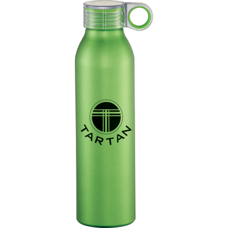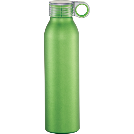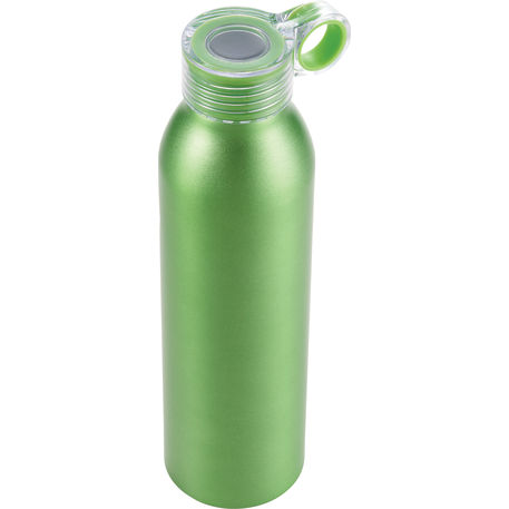 The Grom 22oz Aluminum Sports Bottle features single wall construction with a screw-on, spill-resistant clear lid with color pop feature on the hook. Easy to carry, it comes in a matte, metallic color finish. Hand wash only and follow any included care guidelines.