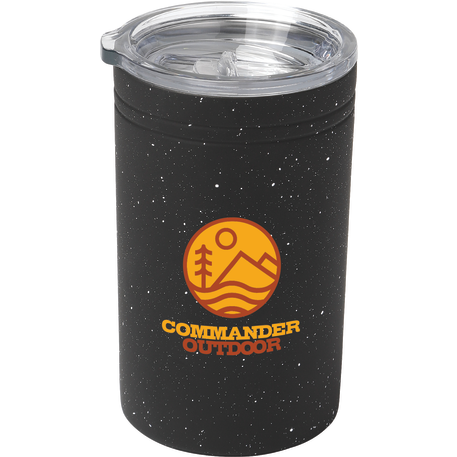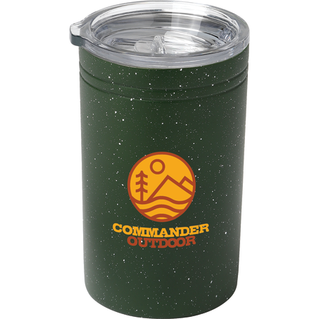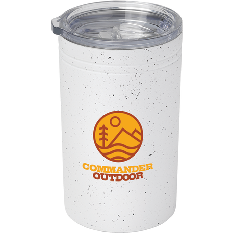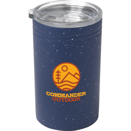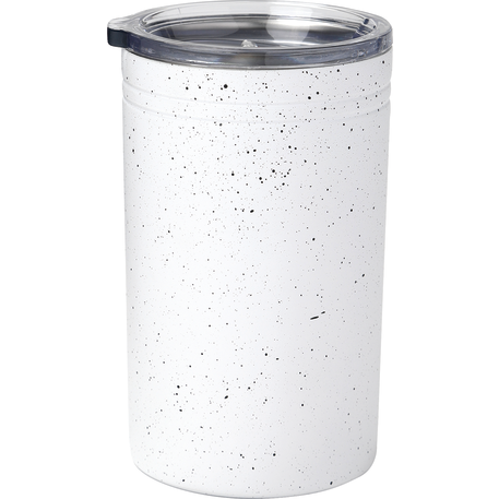 Double-wall construction, vacuum insulated. Clear, press-on lid with slide closure. Works as a tumbler or drink insulator. Hand wash only. Follow any included care guidelines.