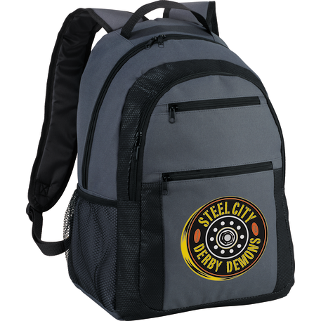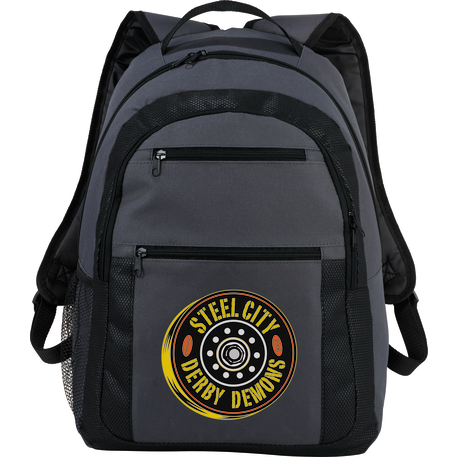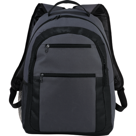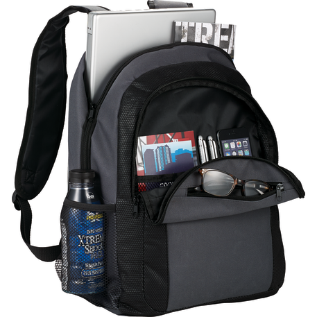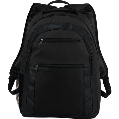 The Executive 15" Computer Backpack has a large zippered main compartment that houses a padded sleeve that can hold up to a 15 inch laptop. A slim second zippered compartment has an organizational panel for additional storage, plus two zippered front pockets and a side mesh pocket. Featuring non-woven accents throughout it also includes a padded, adjustable shoulder straps and a top grab handle.