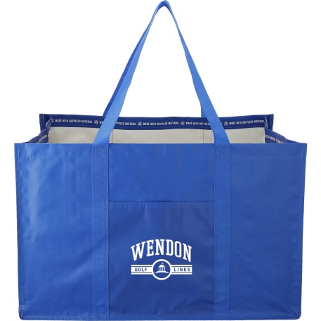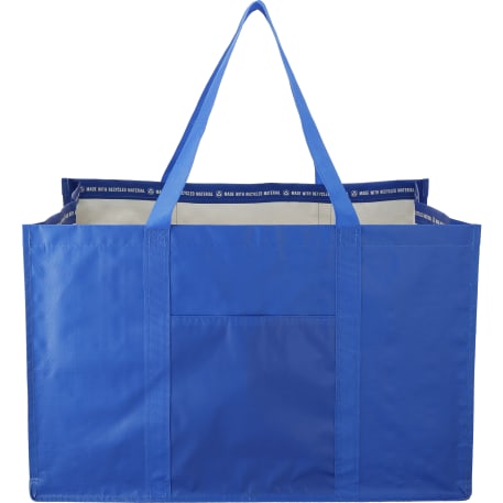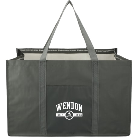 The Recycled Woven Utility Tote is made with recycled materials and is perfect for storing and transporting all the essentials. 11.5" grab handles. This tote has passed testing to be reusable for at least 125 uses. The characteristics of the non-woven polypropylene material used for this item make it naturally water-resistant. Through a partnership with 1% For The Planet, one percent of sales of all EcoSmart® products are donated to environmental nonprofits.
