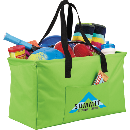 The Large Utility Tote features the largest open main compartment of the utility collection. A wire rim additionally provides this tote with enhanced structure and added stability. 11" handle drop.
