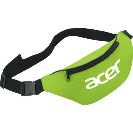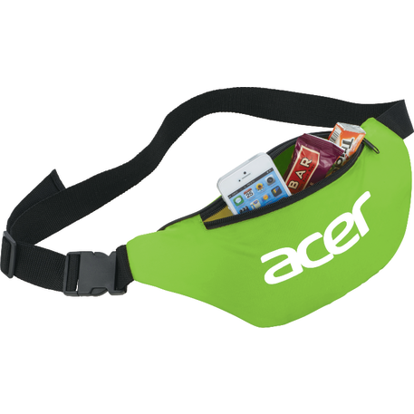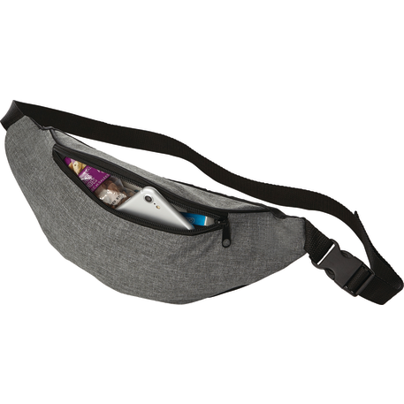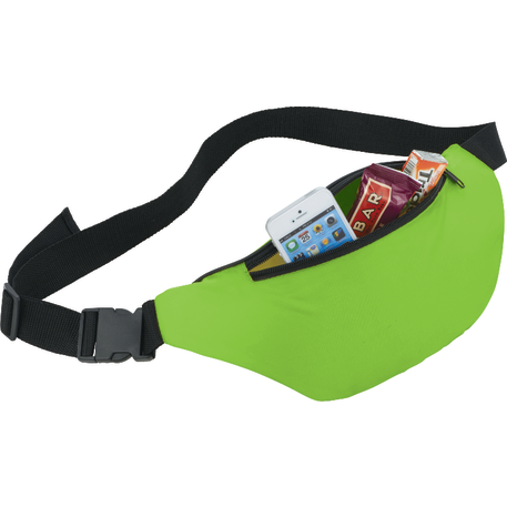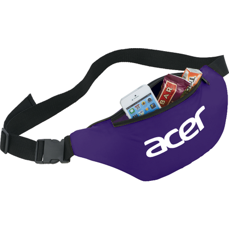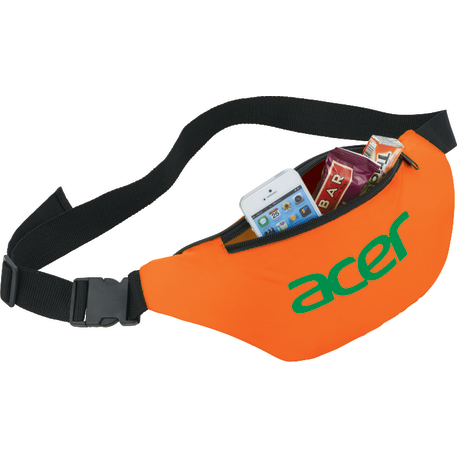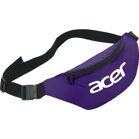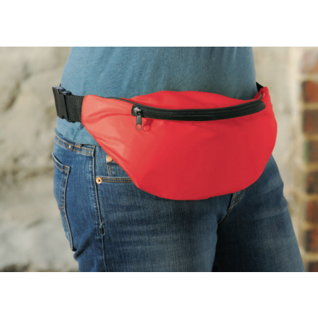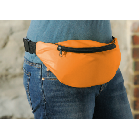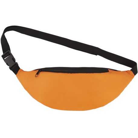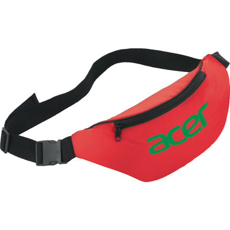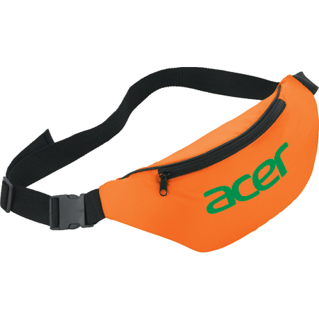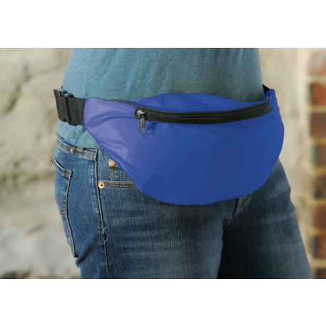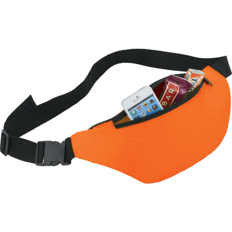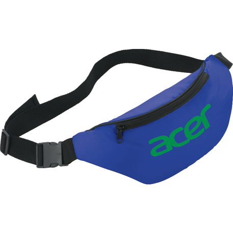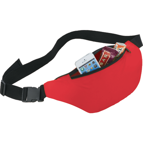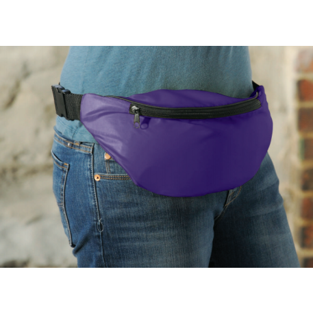 The Hipster Budget Fanny Pack is as cool as they come with a zippered main compartment and an adjustable waist strap and buckle. The belt extends to be about 47in. Minimum size of waistband is 14".