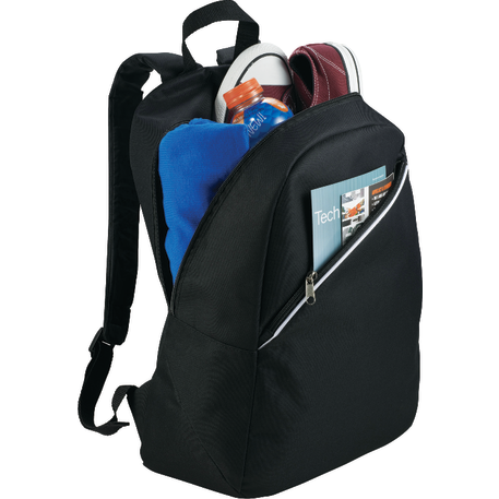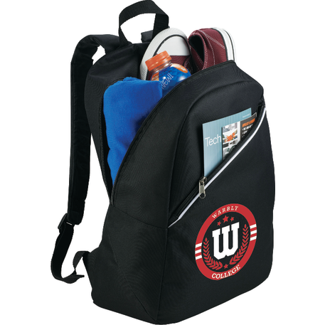 The Arc Slim Backpack has a large zippered main compartment that includes a stylish zippered front pocket. It also incorporates adjustable, reinforced padded shoulder straps with a convenient webbed carry handle.